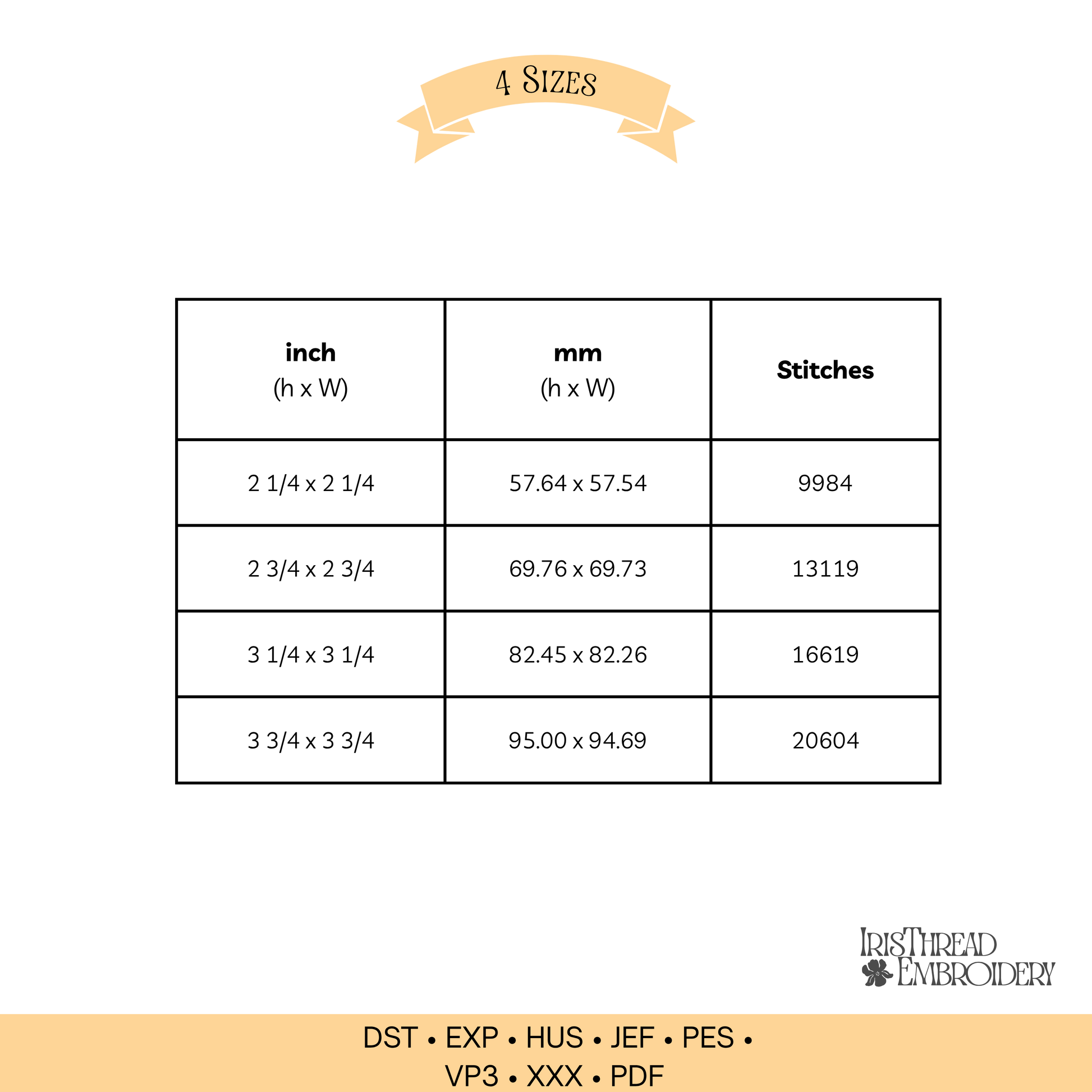 You’ll get 4 sizes to fit any project, and file formats like PES, DST, and EXP are included.