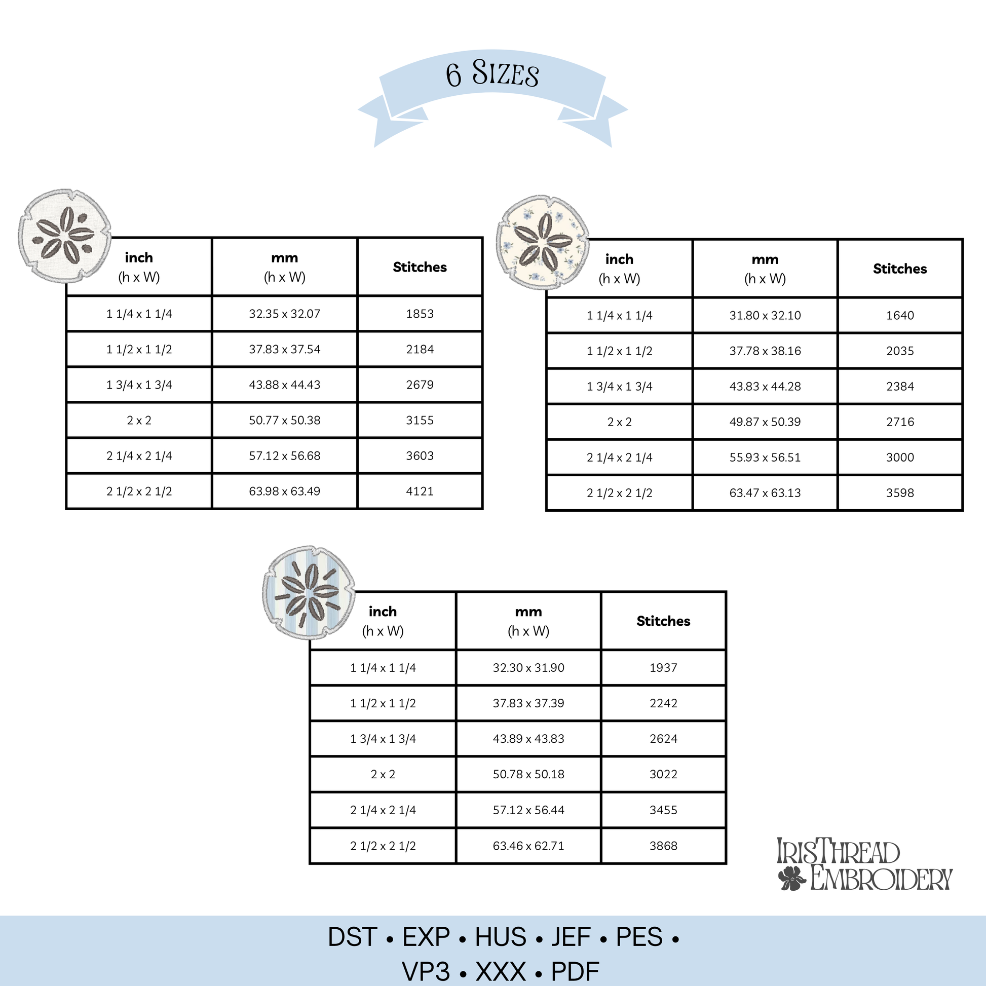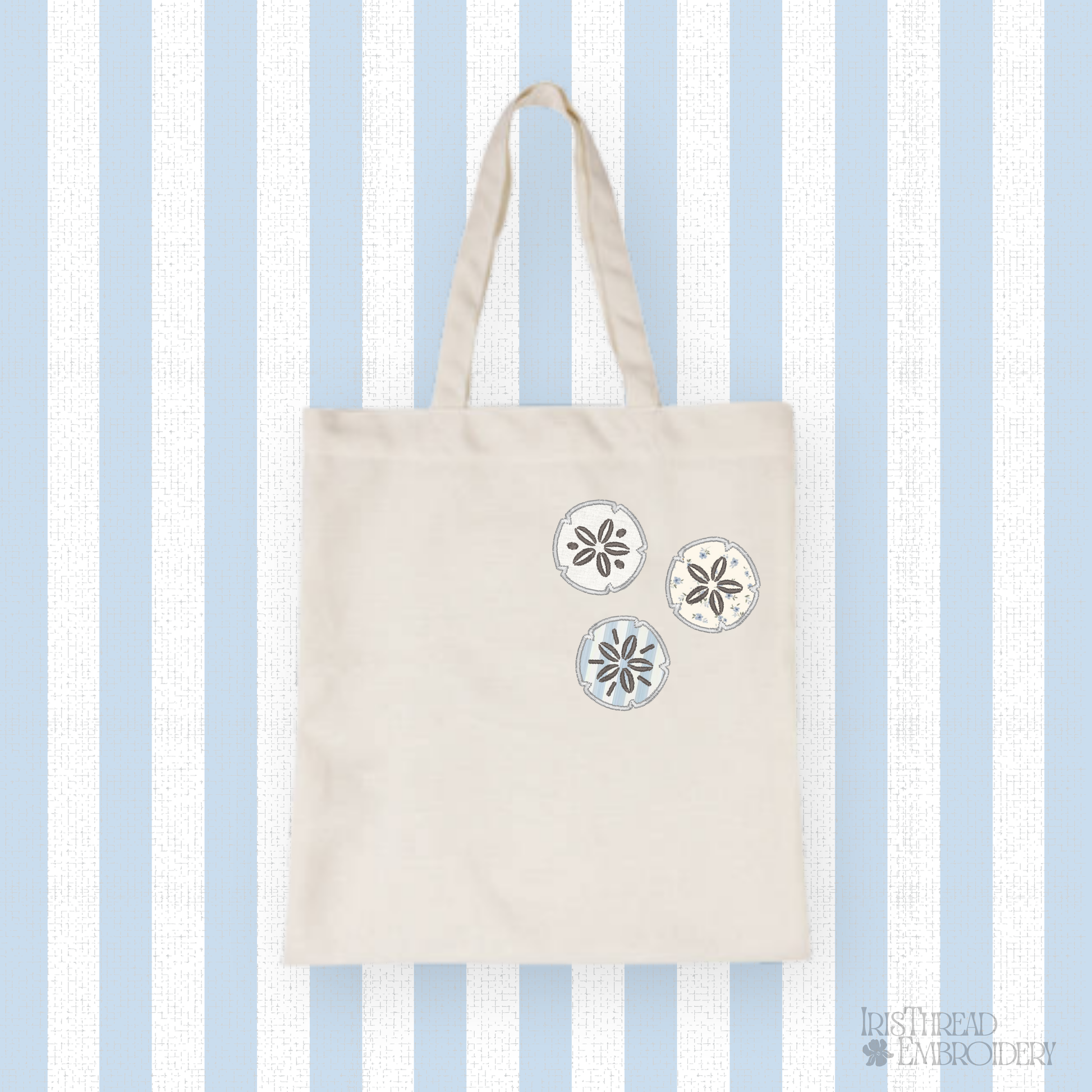 This soft and simple sand dollar design brings a touch of coastal calm to your stitching. It works well with lightweight fabrics and gives you the option to play with textures and prints using appliqué.